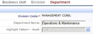 When a highlight pattern is defined, the field displays the number color or the hatch pattern properties. For example, the above image shows the AutoCAD color number of the solid fill highlight assigned to this department. If a hatch pattern is defined, the field shows the name of the hatch pattern as text (for example, ABOXES), as well as the hatch pattern's angle and spacing (for example, “ABOXES 0.0 120.0”).