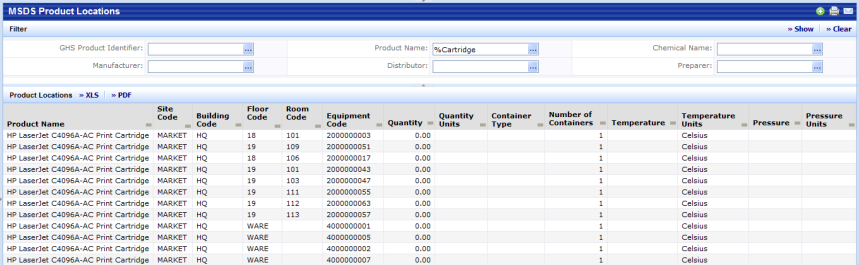 The MSDS Product Locations report is useful when you need to know everywhere you have a particular product. For example there might be a recall notice on a product and you would need to be able to physically locate all containers in your facility.