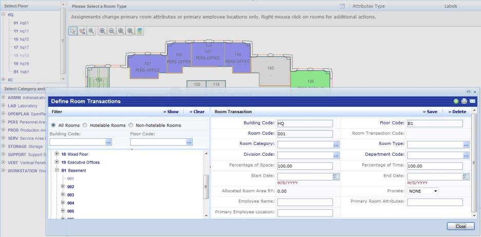 - Use the hierarchy tree in the left frame to drill down to the room that you want to share. Create Workspace Transaction records as appropriate.