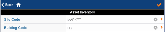 To limit the amount of background data downloaded to your system, you next specify the site and building with which you want to work during this session, as shown below. Choose the check mark in the upper right corner, and the system downloads the background data for the selected site and building. For example, it downloads only the departments located in the selected building.