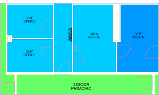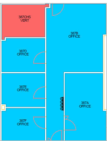 The application brings over the CAD-specified position on the published JSON file, and uses this position by default. If the JSON file does not have this information (for example, when you have upgraded and the JSON file has not yet been re-published), then the system reverts to the method of the weighted center, that is, it uses a system-generated position that is centered in a room for printed output. To change the position of the text in the printed output and on-screen, have your CAD specialist change the position in the CAD drawing. This changes the default text position used when printing.