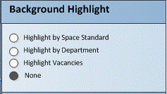 You can highlight the rooms in a floor plan by space standard, department, or vacancy.