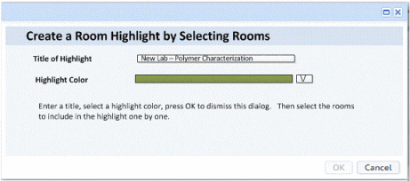 If you need to highlight a set of rooms that do not meet set criteria, you can define the highlight color and title and then select the set of rooms in the floor plan. Once you select the rooms, the system returns you to the Restriction Highlights form, which will list your new highlight.