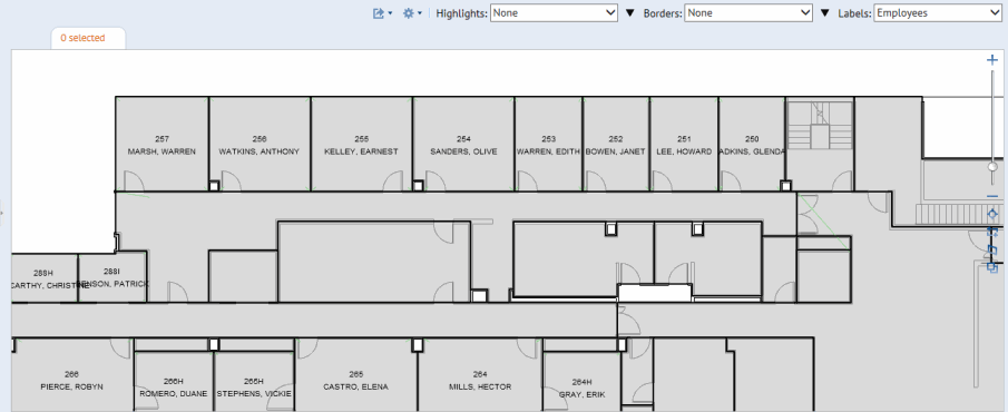 Seeing employees' assigned locations of the floor plan provides valuable information for space planners as well as general staff. In one glance, you can see the employees assigned to each room and use the plan to locate their offices. You may want to print out each floor's occupancy plan and display it in a common area so that employees can easily find their co-workers and stop by their offices. In this way, occupancy plans help to promote face-to-face communication among staff because employees can easily find their co-workers.