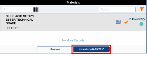 To remind you of the Inventory Start Date, the Materials Dashboard displays it on the Inventory button.