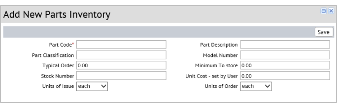 Part Code: Select from the list of parts entered into the system. To add a part that is not on the list, use the Add New action. See Adding new parts as you work