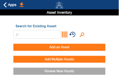 As you work with the Asset & Equipment Registration mobile app, you will notice that the app includes a bar code icon next to some fields. Since inventory managers often tag items with metal or plastic bar code tags whose lines represent a unique alphanumeric value, you can scan this bar code with the mobile device to facilitate searching and data entry