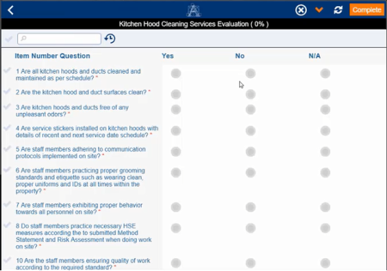 Clicking on a survey task (action item) presents the questionnaire for the inspector to complete.