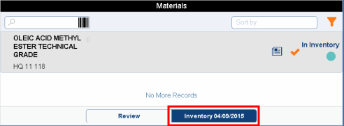To remind you of the Inventory Start Date, the Materials Dashboard displays it on the Inventory button.