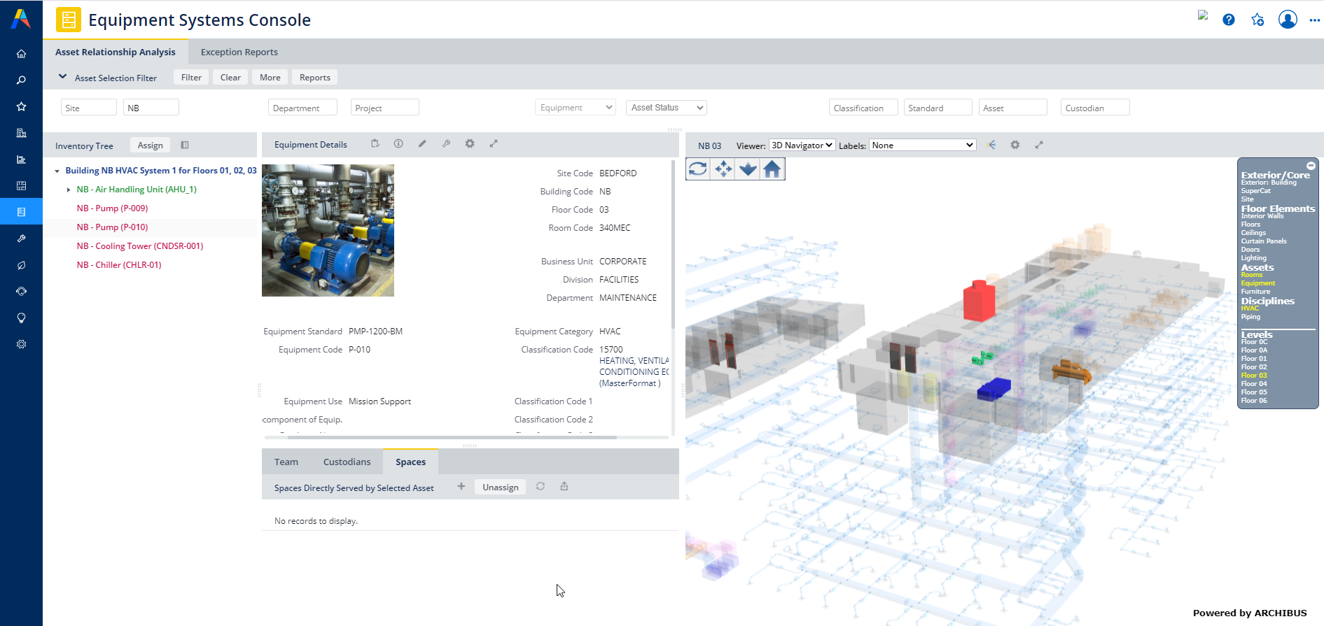 Improve utilization. Use transparency, accountability and control to improve asset utilization rates, which can reduce capital expenditures Speed execution. Speed execution by automating and connecting the work of your IT, facilities, maintenance and compliance teams. Visualize success. Leverage GIS maps and interactive building floor plans to see all assets in their operational context, locate assets quickly, and reduce the number of assets lost or unaccounted for. Reduce risk. Ensure compliance with regulatory and policy mandates through workflows that connect assets with compliance, sustainability, waste management, and projects. Improve accuracy. Maintain an accurate registry of all assets with Archibus features that track asset status as a natural byproduct of day-to-day real estate, facility, maintenance and asset processes. |