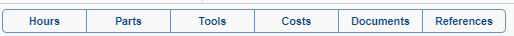 Directly from the mobile device, craftspersons can record the tools, parts, costs, and other details of the job, either while the job is in process or when it is finished and before they run the Complete action. They do so by using the following buttons, located at the bottom of the screen. When they sync the device, all cost information (labor, parts, and other costs) is uploaded to the Archibus database on the server.