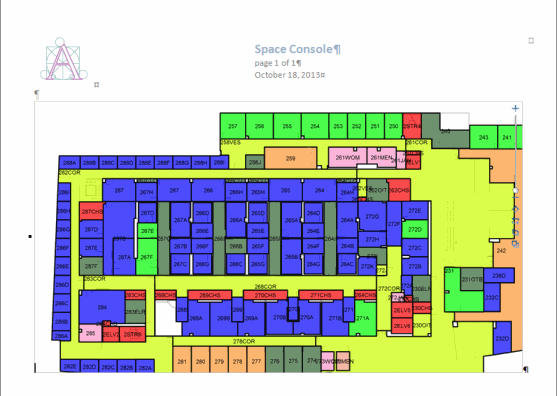 - Archibus exports the drawings on the screen with their current zoom, highlights, and labels as an image (low-res PNG) and places the image in a Word document.