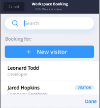 Note that once you create a visitor, the Archibus Workplace indicates visitors in its lists. As shown in the above image, Jared Hopkins is a visitor to the building.