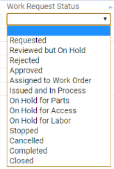 In the Maintenance module and Maintenance applications, several additional Work Request statuses are available.
