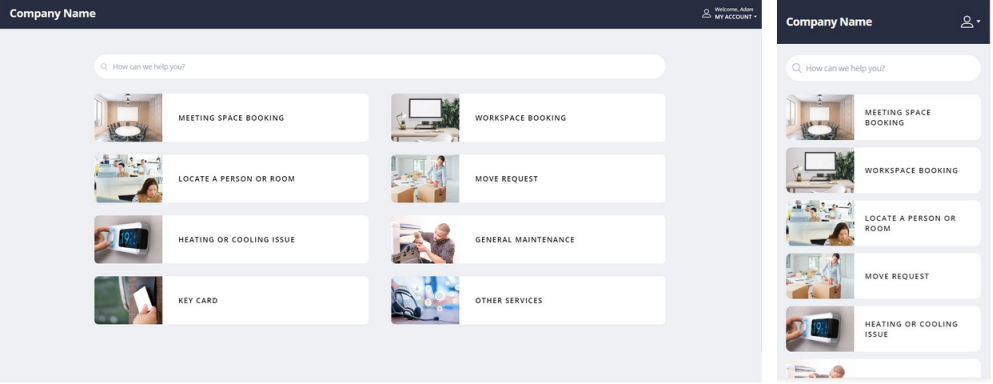 Facility managers want to offer their employees services that enhance their experience and keep them productive. To minimize mistakes in routing requests to the right service provider and to improve efficiency, facility managers also want it to be as easy as possible for employees to select the right type of request and to enter enough information to provide the correct service at top quality. Employees want an easy way to request the services that are offered, to see the details and statuses of open items, and to provide only relevant information.