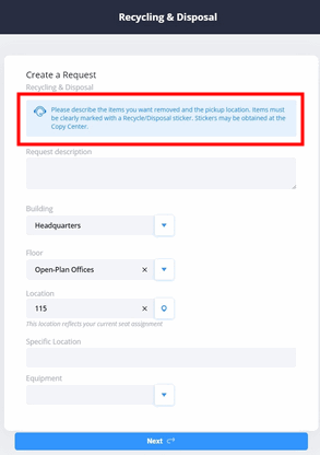 Facility managers can also provide instructions for each request type. This minimizes the questions self-service users have when entering requests and leads to improved efficiency.