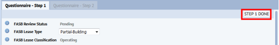 If you have selected Mark as Done but have not yet submitted the lease classification for approval, you can select this button to return to the tabs and change your responses. You can then continue working through the tabs. When you choose this button, the system sets the following fields to No: