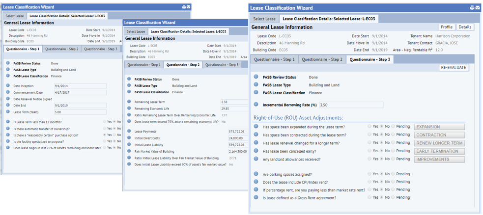 Real Property / Leases / Lease Portfolio / Lease Classification Wizard