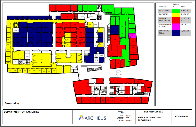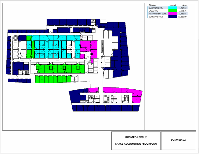 The below image shows a floor plan highlighted by division and exported to a Word document.